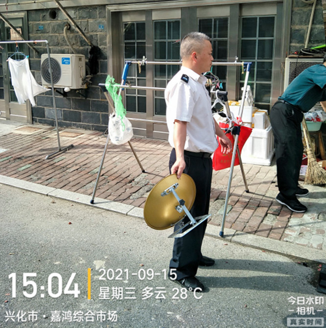 9月15日,兴化市文体广电和旅游局广电管理科联合本市文化市场综合执法大队行政执法人员,在前期城区非法使用小耳朵情况排查摸底的基础上,对城区非法使用小耳朵用户进行了定点拆除。执法中,现场没收“小耳朵”6套,同时,对非法用户进行了法律法规宣传,要求用户使用合法接收设施收看电视。