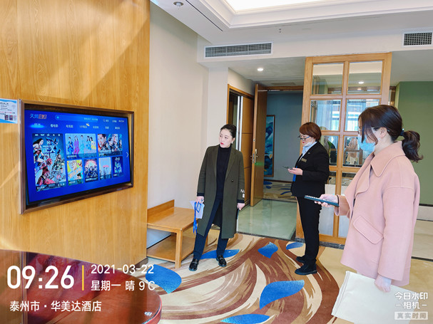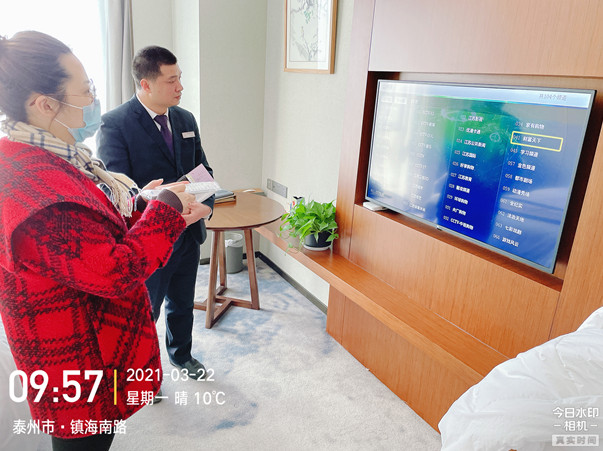 3月22日,泰州市泰兴局联合市文体广旅综合执法大队对市区各家酒店进行境外卫星电视传播秩序专项整治督查,同时签署2021年广播电视安全责任书和卫星地面接收设施安全使用责任书。检查组抽取了泰兴市华美达酒店、泰兴市金龙大酒店和泰兴市豪庭大酒店进行督查,情况良好,未发现未经许可擅自使用卫星地面接收设施和擅自更改接收节目内容的情况。