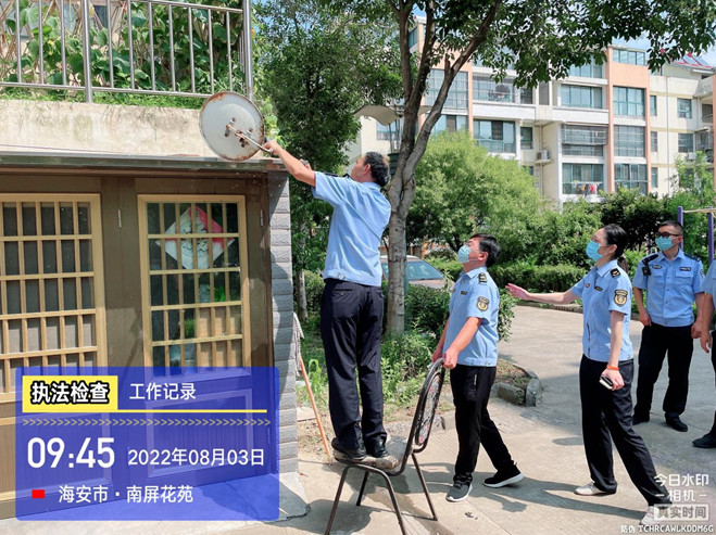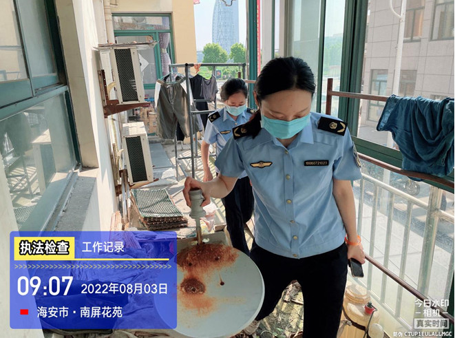 8月3日,海安市文化广电和旅游局联合市公安局、街道社区对部分小区开展了非法安装使用卫星地面接收设施联合执法活动。