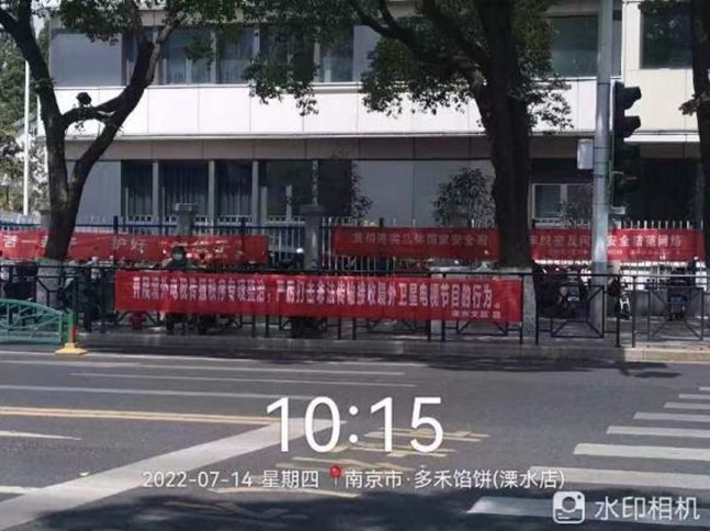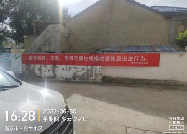 近日,南京市溧水区文旅局瞄准重点区域积极开展境外卫星电视传播秩序专项整治宣传活动。活动通过在城乡接合部、老旧小区、农村地区等“小耳朵”整治重点区域悬挂横幅、发放宣传资料、接受群众咨询等多种形式,向广大居民介绍非法“小耳朵”的特点和危害、鉴别方法,宣传相关法律法规。此次活动共悬挂横幅11条,发放宣传资料320份,接受群众咨询24人次。