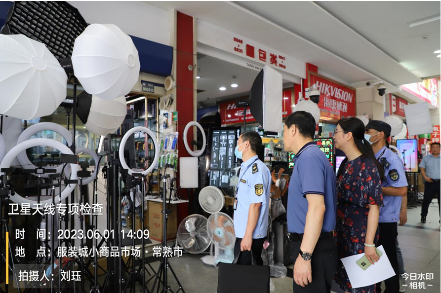 为进一步规范卫星电视传播秩序,打击非法销售卫星地面接收设施行为, 6月1日,常熟市文体广电旅游局会同常熟市莫城街道办事处、莫城街道综合执法局、常熟市服装城管委会物业部,对常熟市服装城小商品市场电器经营区域进行联合检查,主要查看各店铺有无销售卫星地面接收设施(卫星天线)、电视棒等。