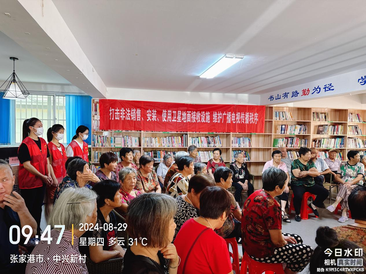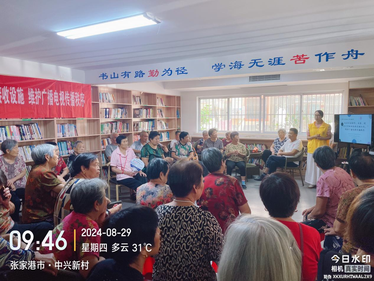 2024年8月29日,张家港市文体广电和旅游局法律宣传小分队走进金港街道中兴社区开展境外卫星电视法律法规宣传活动。