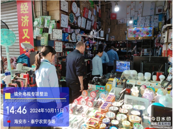 2024年10月11日,海安市文广旅局联合市场监督管理局开展了境外电视传播秩序专项整治行动。