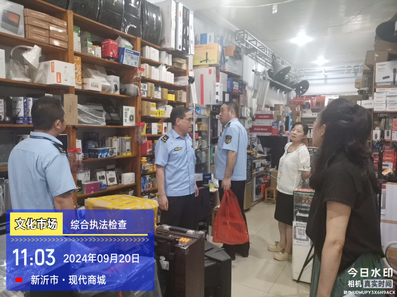 9月20日,新沂市文体广旅局联合市场监督管理局、市文化市场综合执法大队对主城区新安路附件电子商铺开展非法销售“小耳朵”专项检查。