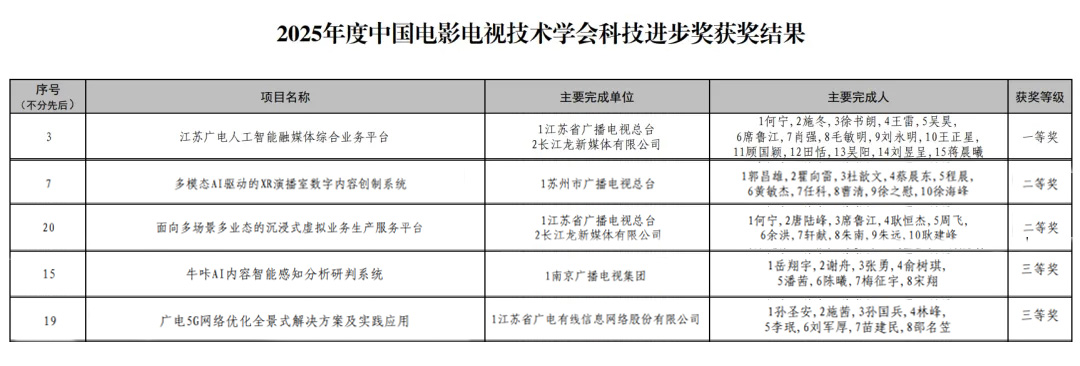 近日,中国新闻技术工作者联合会、中国电影电视技术学会先后公布了2025年度“王选新闻科学技术奖”与“中国电影电视技术学会科技进步奖”评选结果。我省广电行业参评项目表现优异,斩获两大奖项共22项。