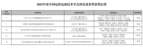 在“王选新闻科学技术奖”评选中,我省共获一等奖3项、二等奖5项、三等奖7项;在“中国电影电视技术学会科技进步奖”评选中,获一等奖1项、二等奖2项、三等奖2项,并有2人荣获科技人才奖,居省级广电行业第一梯队。
