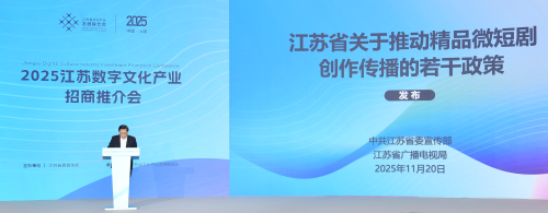 11月20日,江苏数字文化产业招商推介会在第六届长三角国际文化产业博览会上举行,省委宣传部、省广电局会上发布《江苏省关于推动精品微短剧创作传播的若干政策》。该《政策》聚焦创作引导、资金扶持、生态构建与服务优化,推出八项举措: