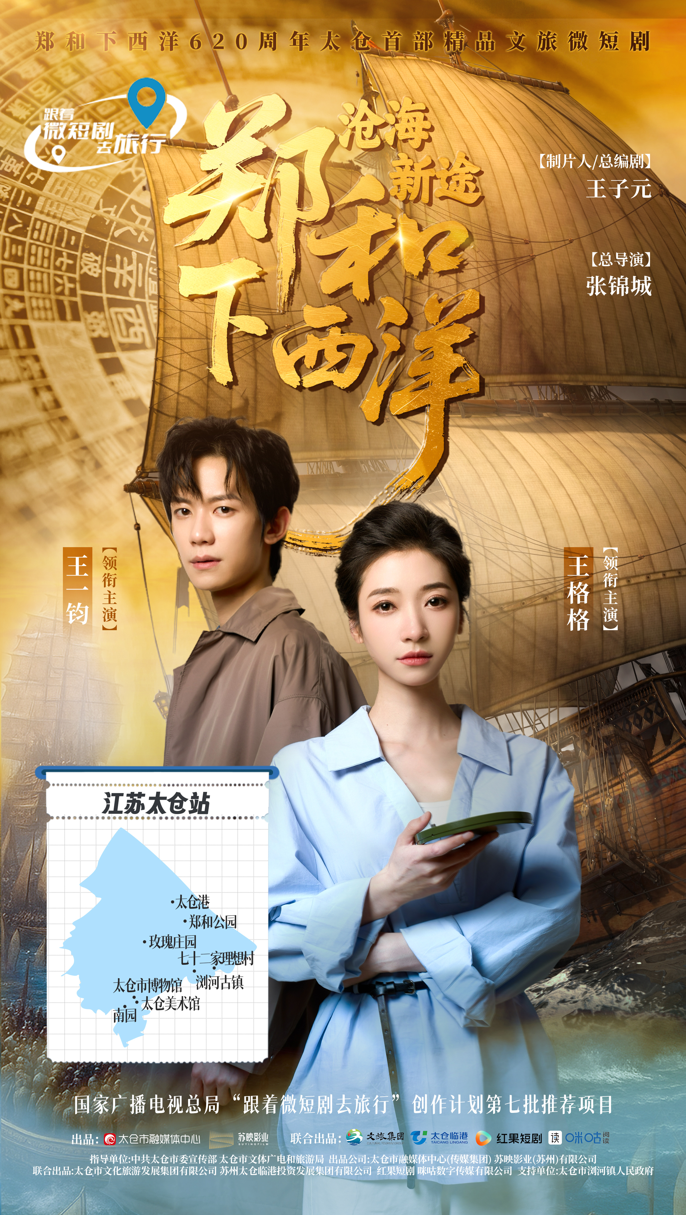 《郑和下西洋:沧海新途》由中共太仓市委宣传部、太仓市文体广电和旅游局指导,太仓市融媒体中心(传媒集团),由苏映影业(苏州)有限公司出品并制作,7分钟*11集,取景地为太仓南园、浏河古镇、郑和公园、太仓港等。该剧挖掘太仓作为郑和起锚地的独特历史文化资源,讲述了太仓少女郑梓玥与密码学家陈奉一联手破解郑和下西洋的秘密文化寻根之旅,展现了年轻一代对郑和精神的情感认同与传承担当。