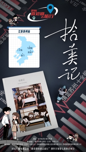 《拾美记》由姑苏区委宣传部指导,姑苏区委宣传部、新未名数字科技(江苏)有限公司联合出品,新未名数字科技(江苏)有限公司、苏州剧创壹玖零捌文化传媒有限公司、苏州晟昀影视传媒有限公司联合制作,5分钟*10集,取景地为苏州市姑苏区十全街、乌鹊桥、网师园、沧浪亭、盘门、苏州火车站。讲述了非遗传承人顾砚清与咖啡店主林晓满在传统与青春交织的十全街上相遇相知,携手共进的励志甜美爱情故事,展现了青年人在文化传承创新的探索实践和古城人文经济共生的现代活力。