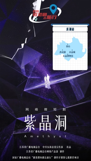 《紫晶洞》由江苏荔枝网络发展有限公司制作,10分钟*8集,取景地为连云港市东海羽山风景区、连云港市东海县水晶城、曲阳镇水晶村。讲述了东海人海外淘晶与两代水晶人恩怨的悬疑故事,展现了亲情和解与匠人精神的薪火相传。