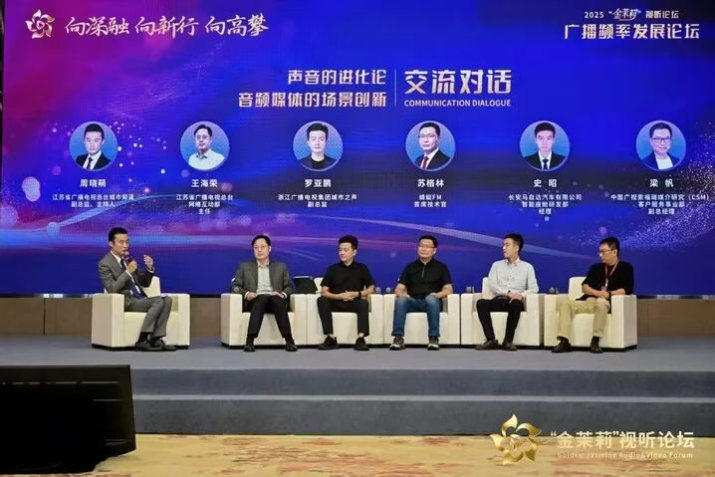在频率发展交流对话中,浙江广播电视集团城市之声副总监罗亚鹏分享了音频媒体可视化IP打造与生态构建的经验。江苏广电总台网络互动部主任王海荣重点介绍了江苏广播通过“咪豆音乐节”等品牌活动实现声量破圈、价值延伸的创新实践。蜻蜓FM首席技术官苏格林、中国广视索福瑞媒介研究(CSM)媒介研究客户服务事业部副总经理梁帆与长安马自达汽车有限公司智能座舱研发部经理史昭,则从智能技术、车载场景和用户体验等角度,共话音频智能化升级与场景深耕的未来趋势。
