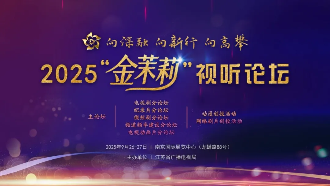初秋的南京,江畔生辉。9月26日至27日,由江苏省广播电视局主办的2025“金茉莉”视听论坛在南京国际展览中心举行。论坛以“向深融向新行向高攀”为主题,设置主论坛及电视剧、电视纪录片、微短剧、频道频率建设、电视动画片五个分论坛,并举办动漫创投与网络剧片创投两场活动。来自政府主管部门、科研院所、行业协会、头部平台及制作机构的代表齐聚一堂,围绕行业改革发展、内容生产、技术应用与产业联动等方面展开深入交流与研讨。