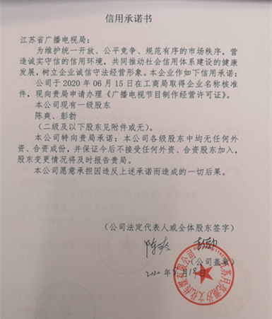 苏州月亮湖汐文化传媒有限公司信用承诺书