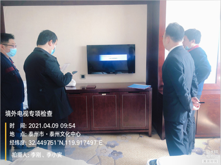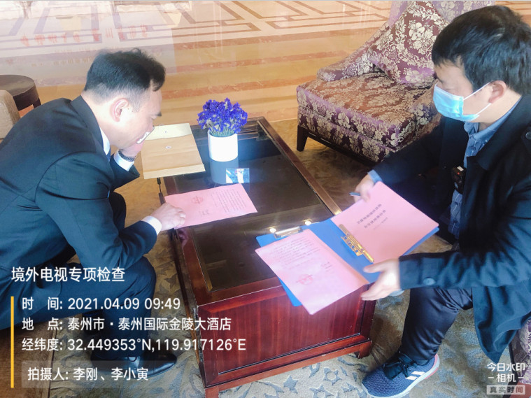 4月9日,泰州局结合中视公司地方服务机构反馈的1至3月份境外卫视节目开关机信息,对辖区内境外电视持证单位进行了专项检查,同时与持证单位签订了《卫星地面接收设施安全使用责任书》。
