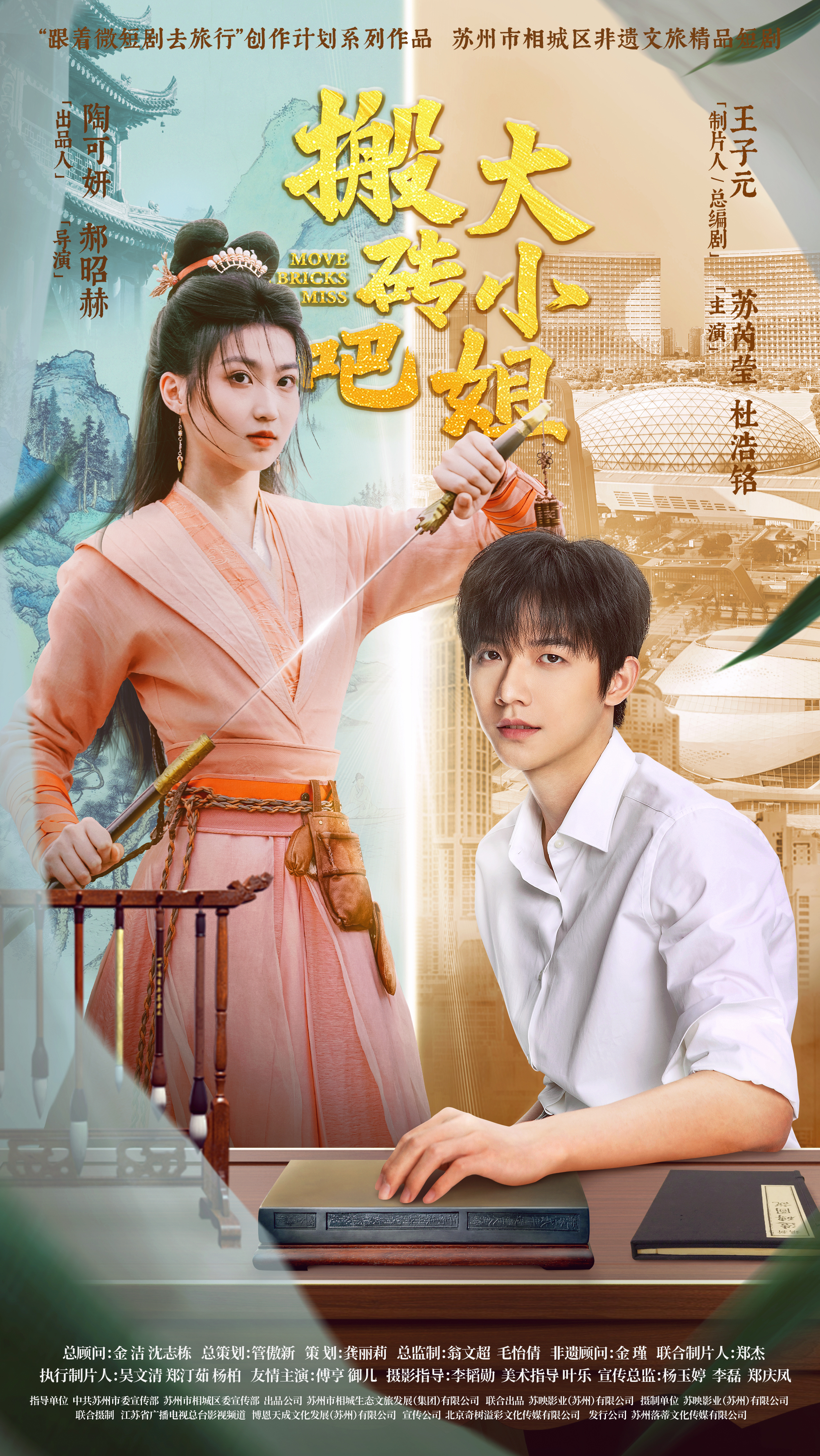 《搬砖吧,大小姐!》由苏州相城生态文旅发展(集团)有限公司、苏映影业(苏州)有限公司联合出品,取景地为苏州御窑金砖博物馆、苏州陆慕御窑金砖厂、中国冯梦龙村等,讲述了明朝张梦眉穿越到现代苏州,与御窑金砖厂传承人陈家乐一起保护与传承“苏州御窑金砖制作技艺”的故事,展示了国家级非物质文化遗产的独特风采、深厚底蕴和时代价值。