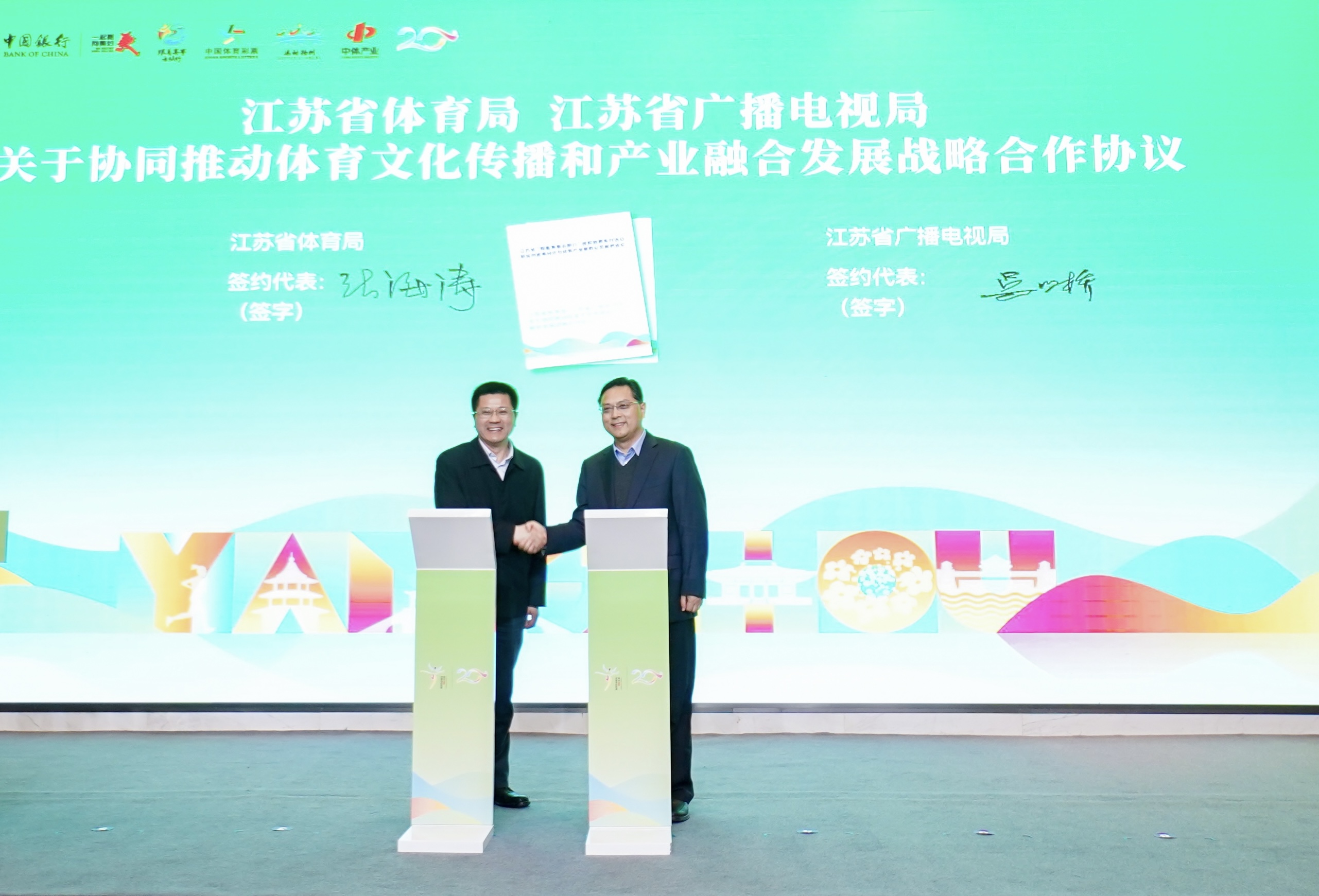 3月27日,2026江苏省“跟着赛事去旅行”提振消费系列活动在扬州启动。活动现场,江苏省体育局与江苏省广播电视局签署《协同推动体育文化传播和产业融合发展战略合作协议》,同步启动2026“跟着微短剧去运动”主题征集创作推广活动。省体育局党组成员、副局长张海涛,省局党组成员、副局长、一级巡视员吴以桥参加活动并签署协议。